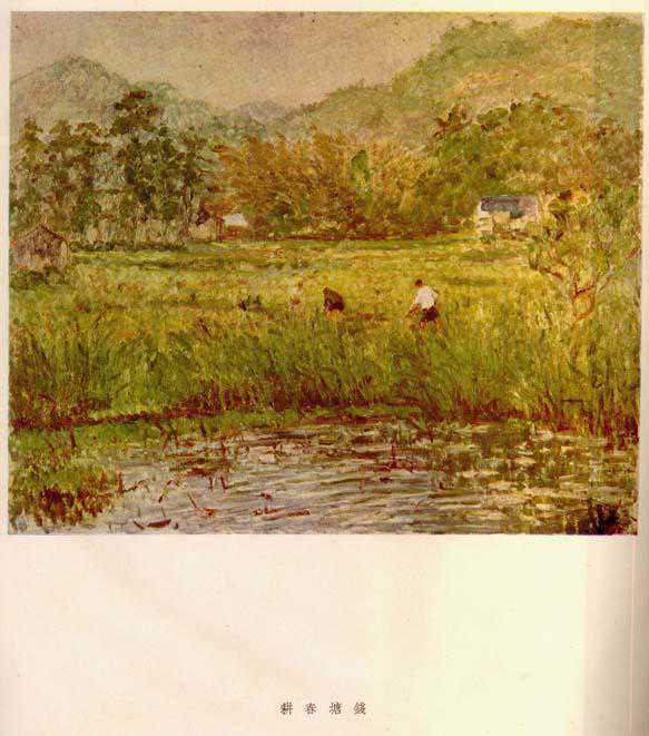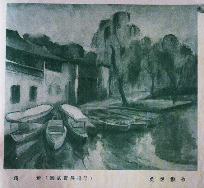 吴恒勤曾与汪亚尘合编《绘画辞典》,也合编过《世界名画选集》(后于1937年其版本在商务印刷厂遭日军飞机轰炸焚毁),介绍印象派艺术家。他的作品也偏于印象主义,虽然从文献上只能看到黑白版本,但他的色彩是非常好,我们所见的作品画了西湖水景,画水景涉及相对色、补色等色彩系统,如果没有一定的学院派的技巧很难驾驭,而且如果作为现场写生的示范,需要真功夫。