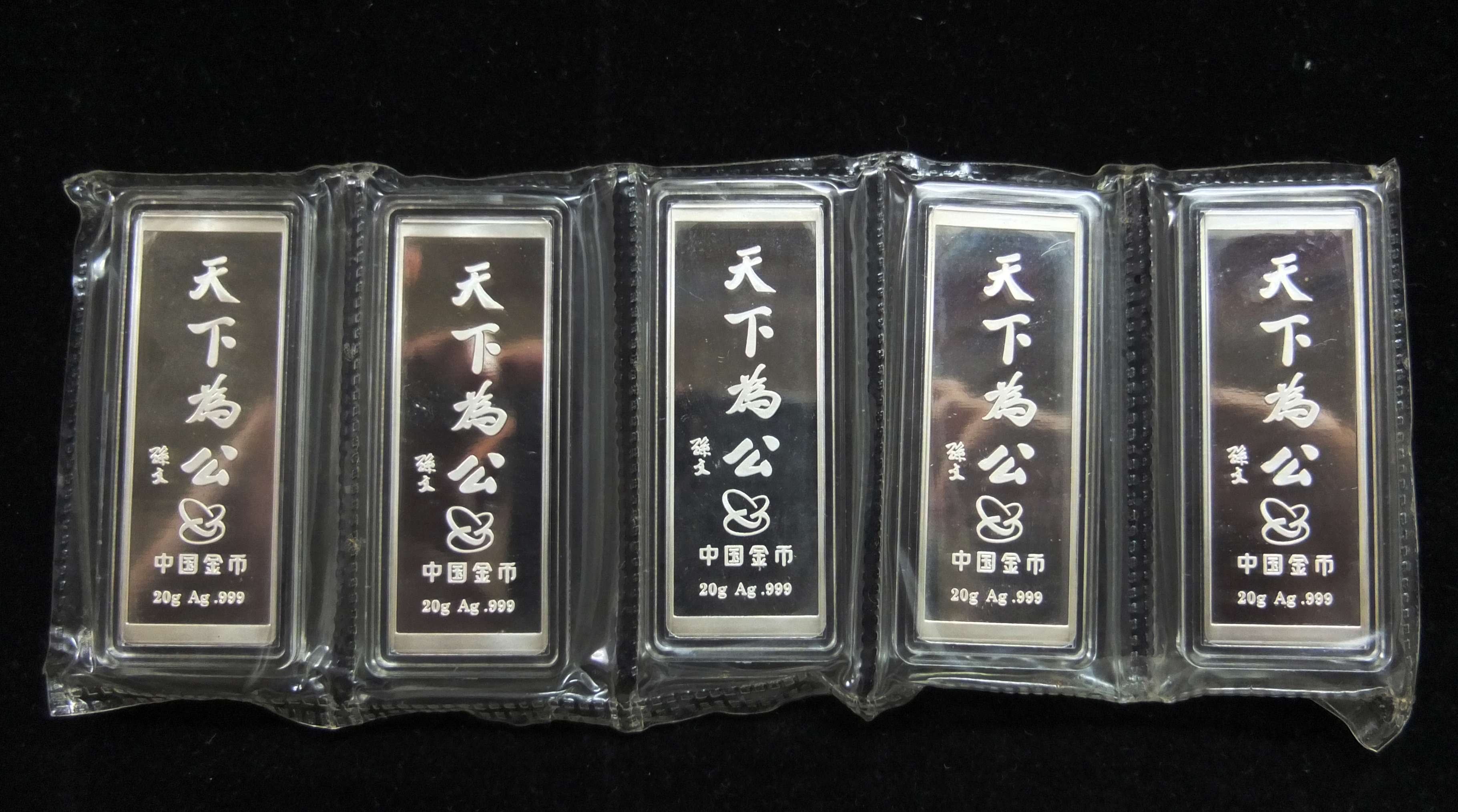 第5号拍品:中国金币辛亥革命100周年纯20g银条共5条100g原封装proof