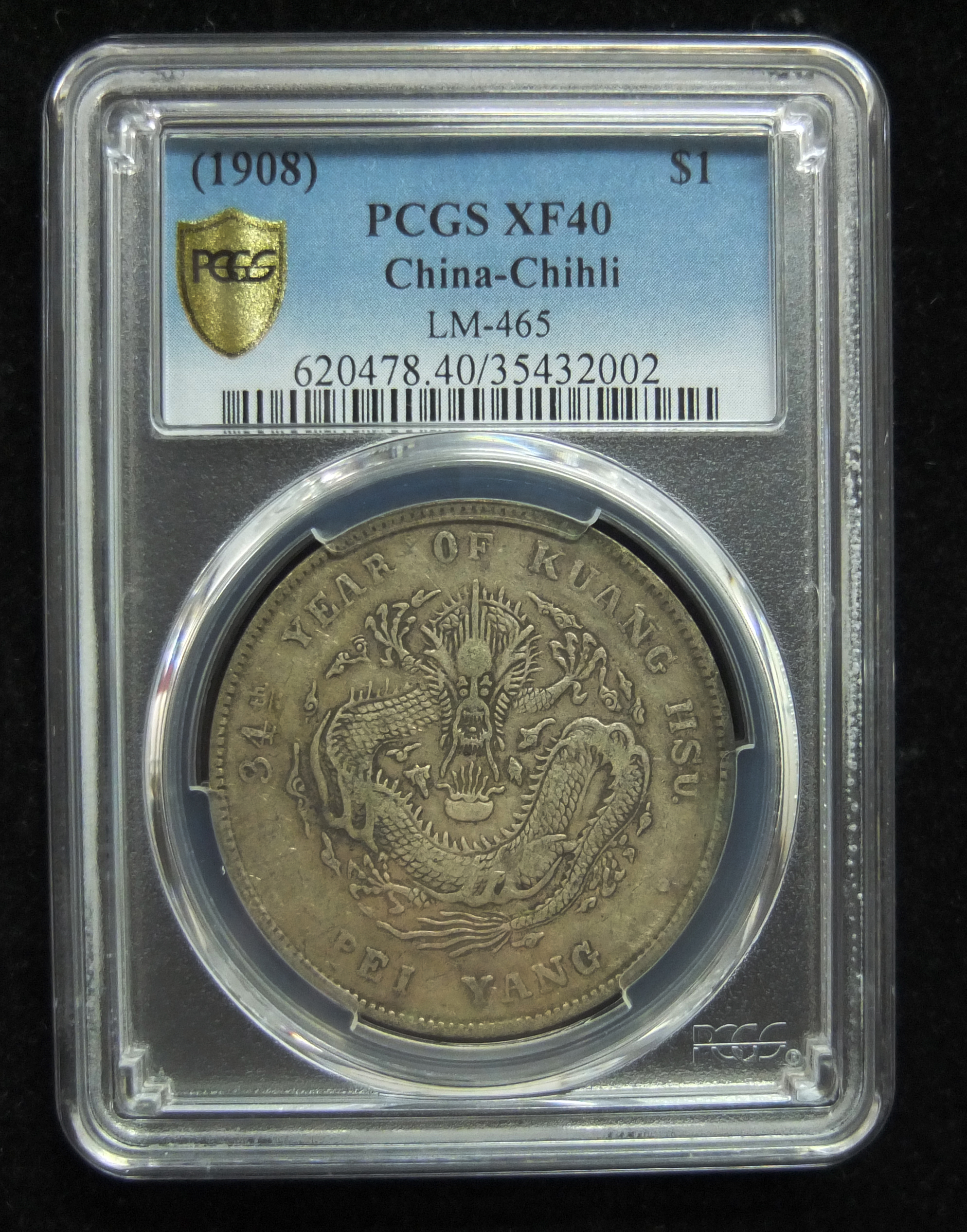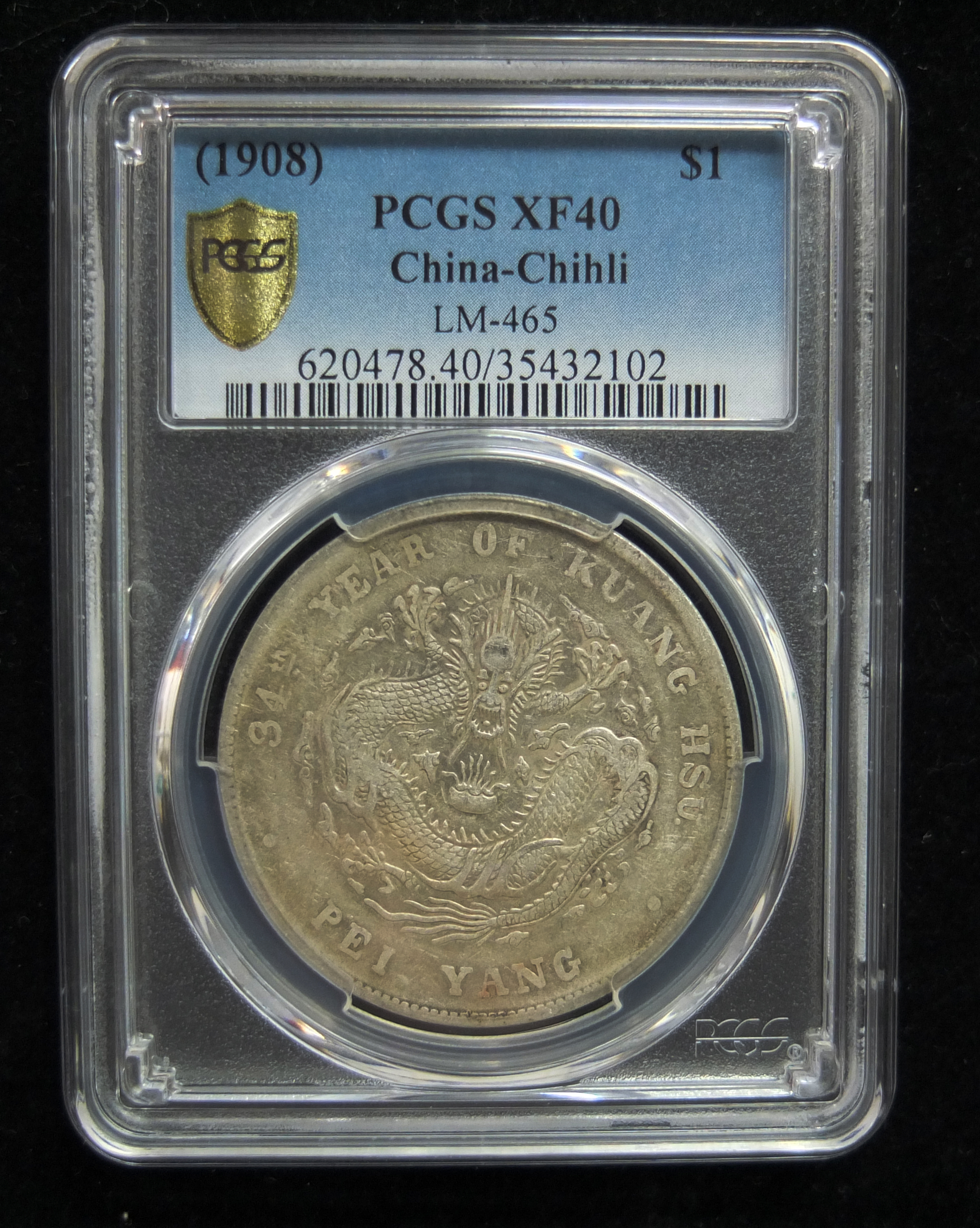 第20号拍品:光绪元宝北洋造34年库平七钱二分PCGSXF40102
