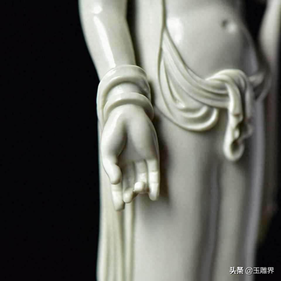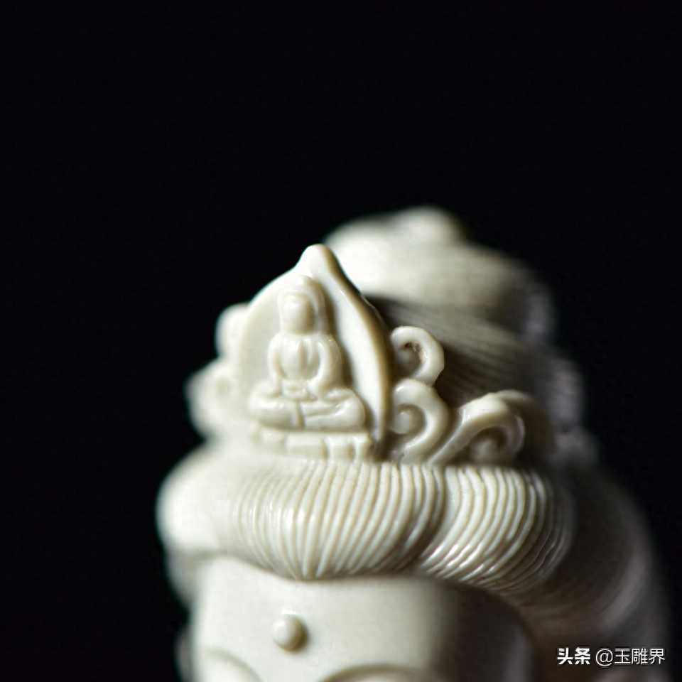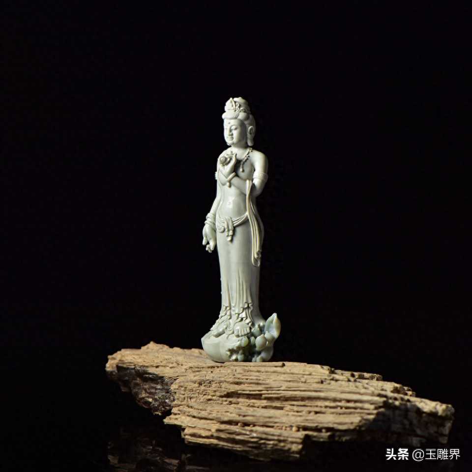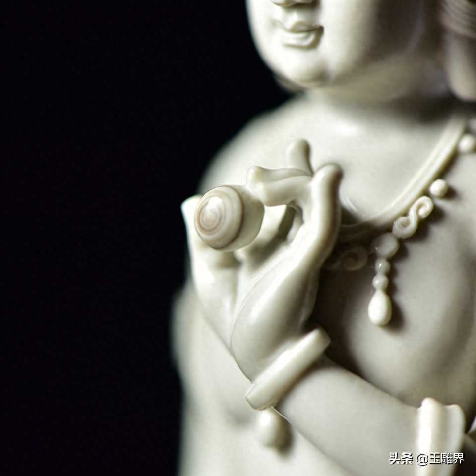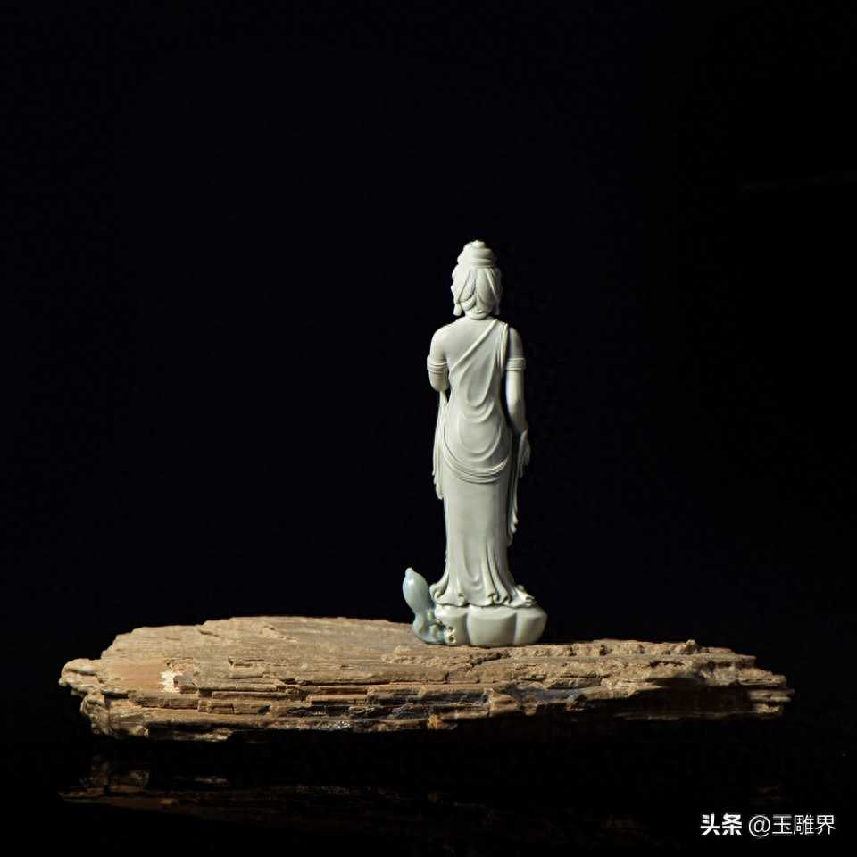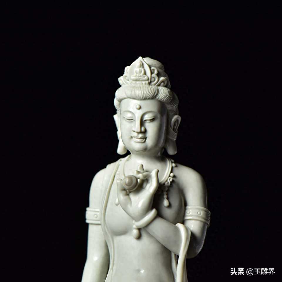 阿拉善玉摆件——观音菩萨。玉质温润细腻,白如凝脂。