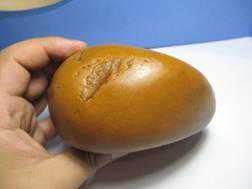 [冻蜡]:极为细腻且透明的蜡石(石体透明、上等冻蜡可透至石心)。一如冬天肉冻中液体冻结的部分,冻蜡表层光洁油润,柔美纯净,透明或半透明,用小电筒照明其透光性甚好,可透至石心。冻蜡大多形态不大,通常可做雕料,好的黄冻蜡质色可与田黄媲美。