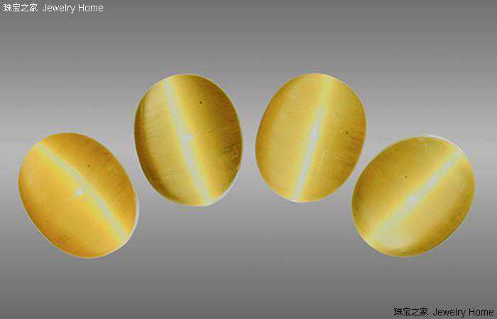 品质非常好的猫眼石戒指,眼线位于宝石正中央,完整,亮且直,分布均匀,猫眼呈现非常明显的乳白—蜜黄色效果,达到收藏级别猫眼石的颜色颇为丰富,可以呈现黄绿、褐绿、黄褐、蜜黄色等,其中蜜黄色最佳。优质的猫眼石眼线伴有“乳白—蜜黄色”效果,而且眼线位于宝石正中央、均匀、完整、平直且明亮。拿光源(最好是聚光光源,比如光纤灯)照宝石,你会发现宝石向光的一面呈现其体色,而另一半见乳白色。有意思的是,把猫眼石放在两个光源下,随着宝石的转动,眼线会出现张开与闭合的现象。另外,猫眼石虽在缅甸、津巴布韦等地有产出,但其主要产地是还是巴西和斯里兰卡,基本所有优秀品质的猫眼石都来自斯里兰卡。