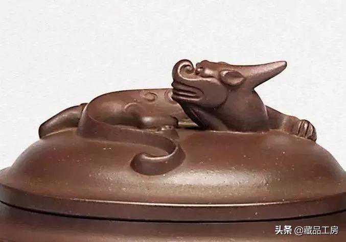 此为明代紫砂大家陈仲美所作,此人擅以紫砂仿古青铜器,工艺精巧,别有韵致。