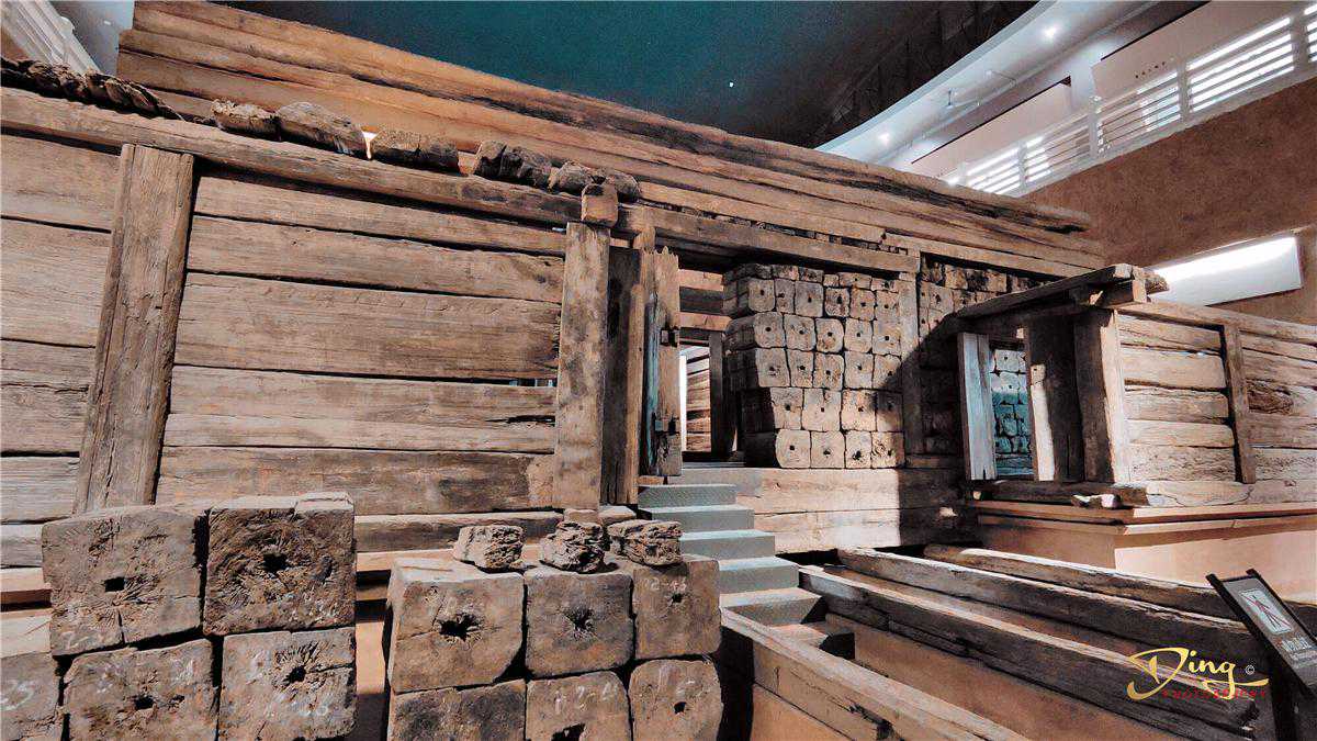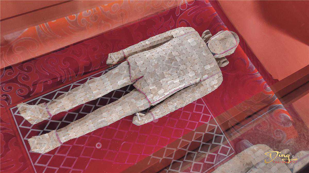 苑中展出了西汉第一代广陵王刘胥及王后的墓葬,属帝王级的“黄肠题凑”式木椁墓,规模宏大,结构严谨,是全国罕见的大型墓葬之一,并出土金缕玉衣残片,距今已有两千多年的历史。