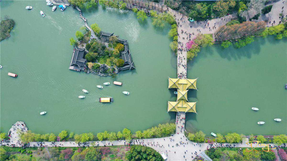 瘦西湖上还有一处景点不能不提,叫“二十四桥”,其实就是一座单孔桥。瘦西湖的景色妩媚多姿,尤其春色降临时,漫步湖畔,三步一柳,五步一花,花树陪伴,便觉舒卷飘逸,顿生诗情画意。