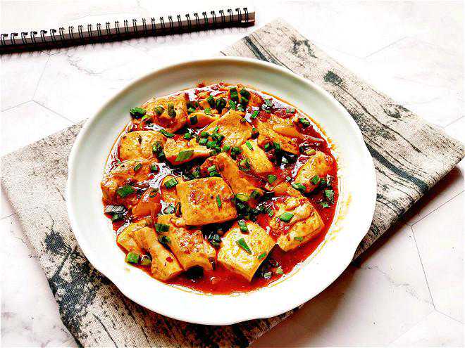 所需材料:嫩豆腐2块,花生油2勺,豆瓣酱2勺,香葱1棵,耗油1勺,白糖半勺,生抽半勺,清水适量,黑胡椒粉少许。