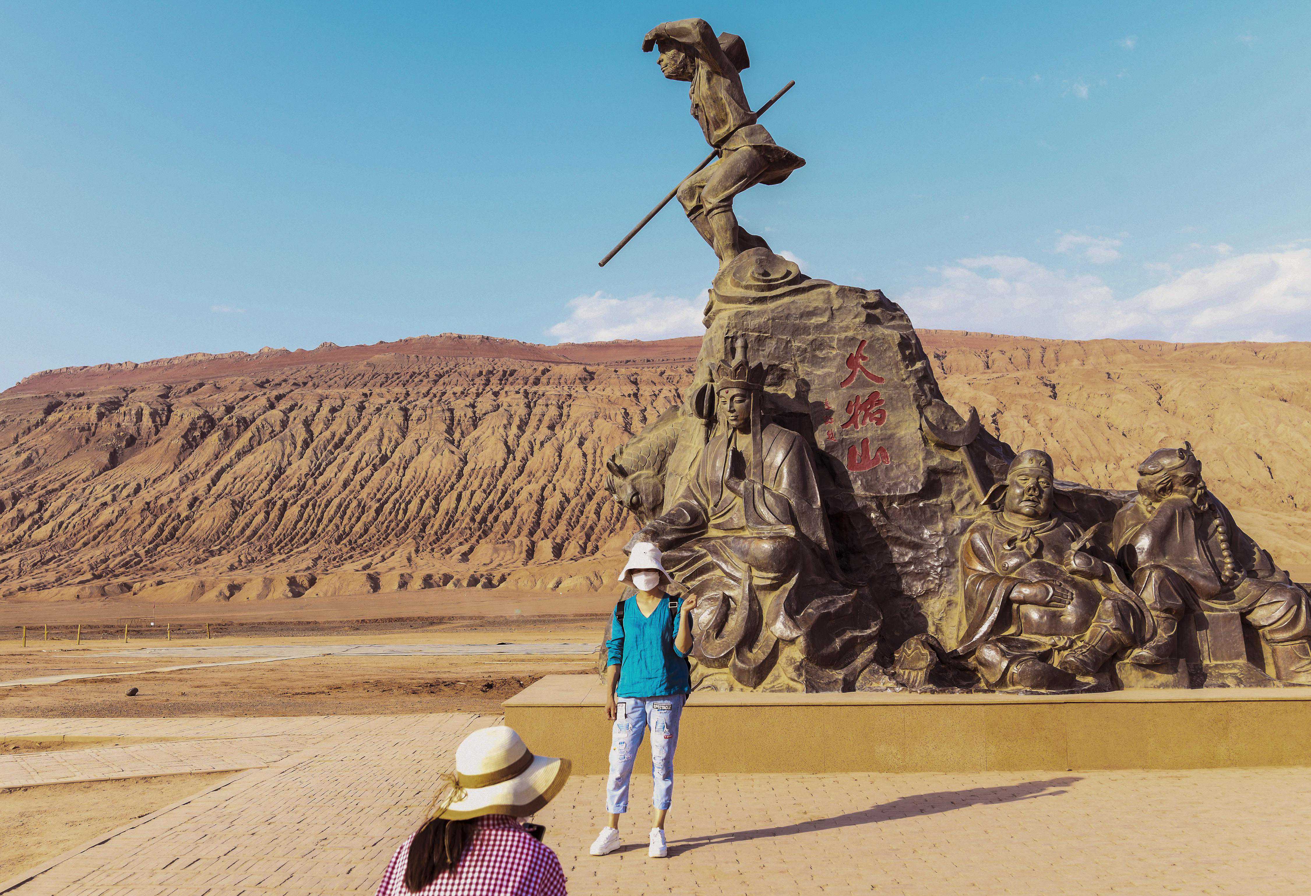 游客在位于新疆吐鲁番的火焰山景区观光(2020年9月21日摄)。新华社记者王菲摄