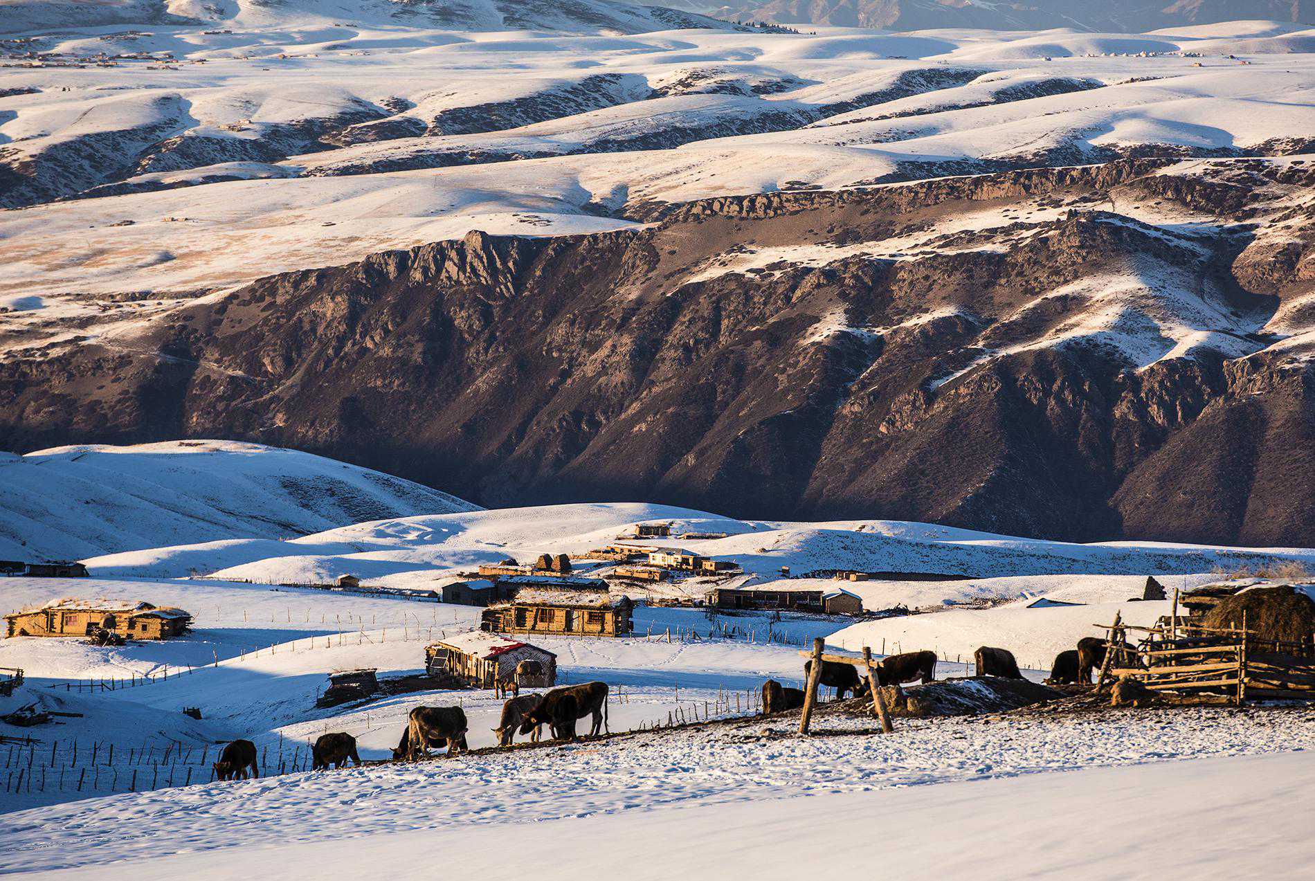 天山深处、乌孙古道上琼库什台村的“冬窝子”(冬季牧场)(2016年1月23日摄)。新华社记者沈桥摄
