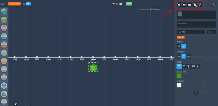 4、支持在时间轴中插入图片、超链接、附件等多种形式。