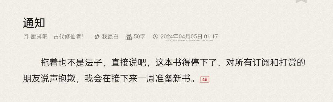 当然突然摆烂也还是让读者很不解的,不过后来单章删了,第二天也照样更新了,切了又没切的样子。