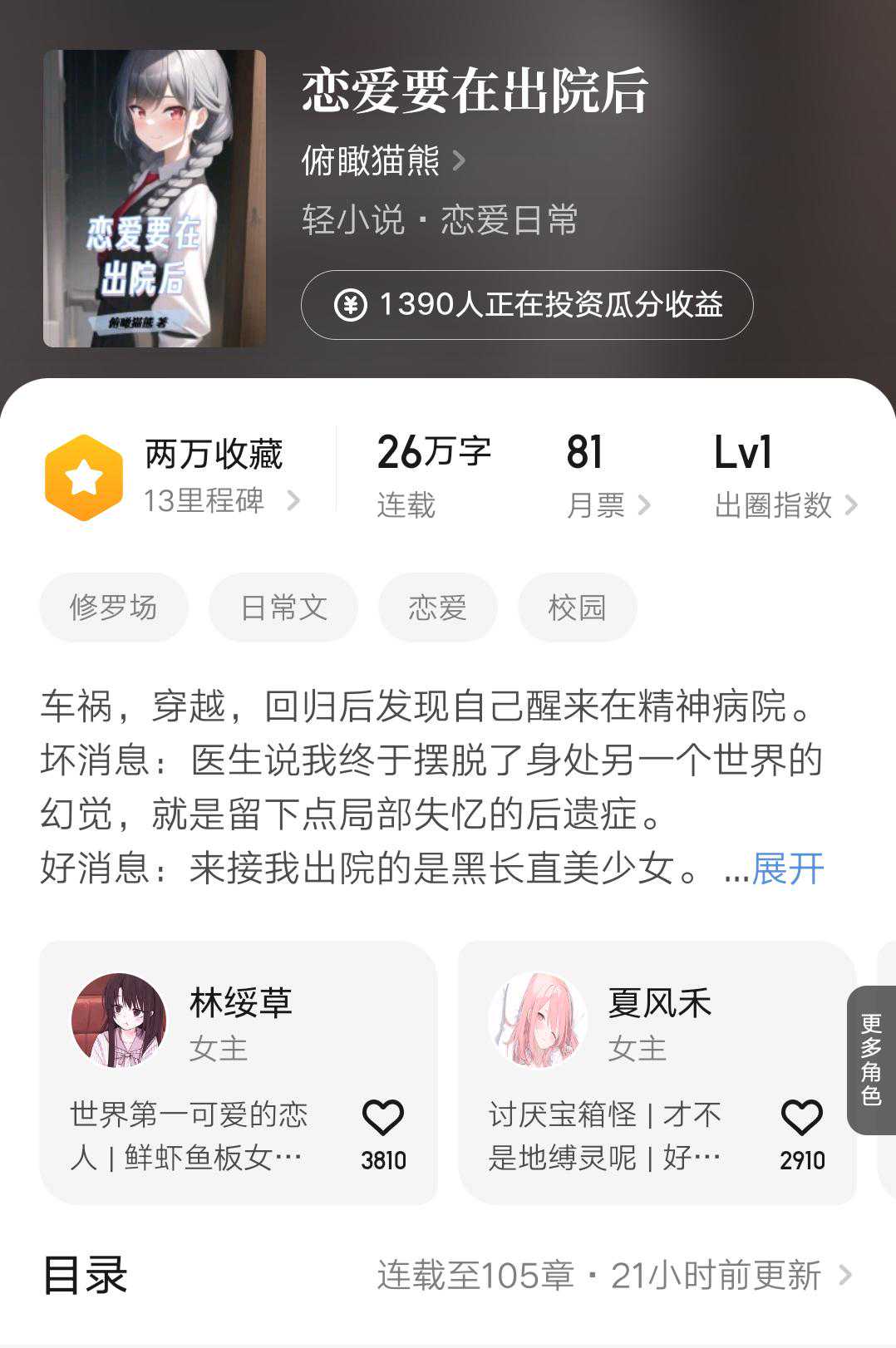 之前说过俯瞰猫熊新书《恋爱要在出院后》发了大纲确定切书的事。