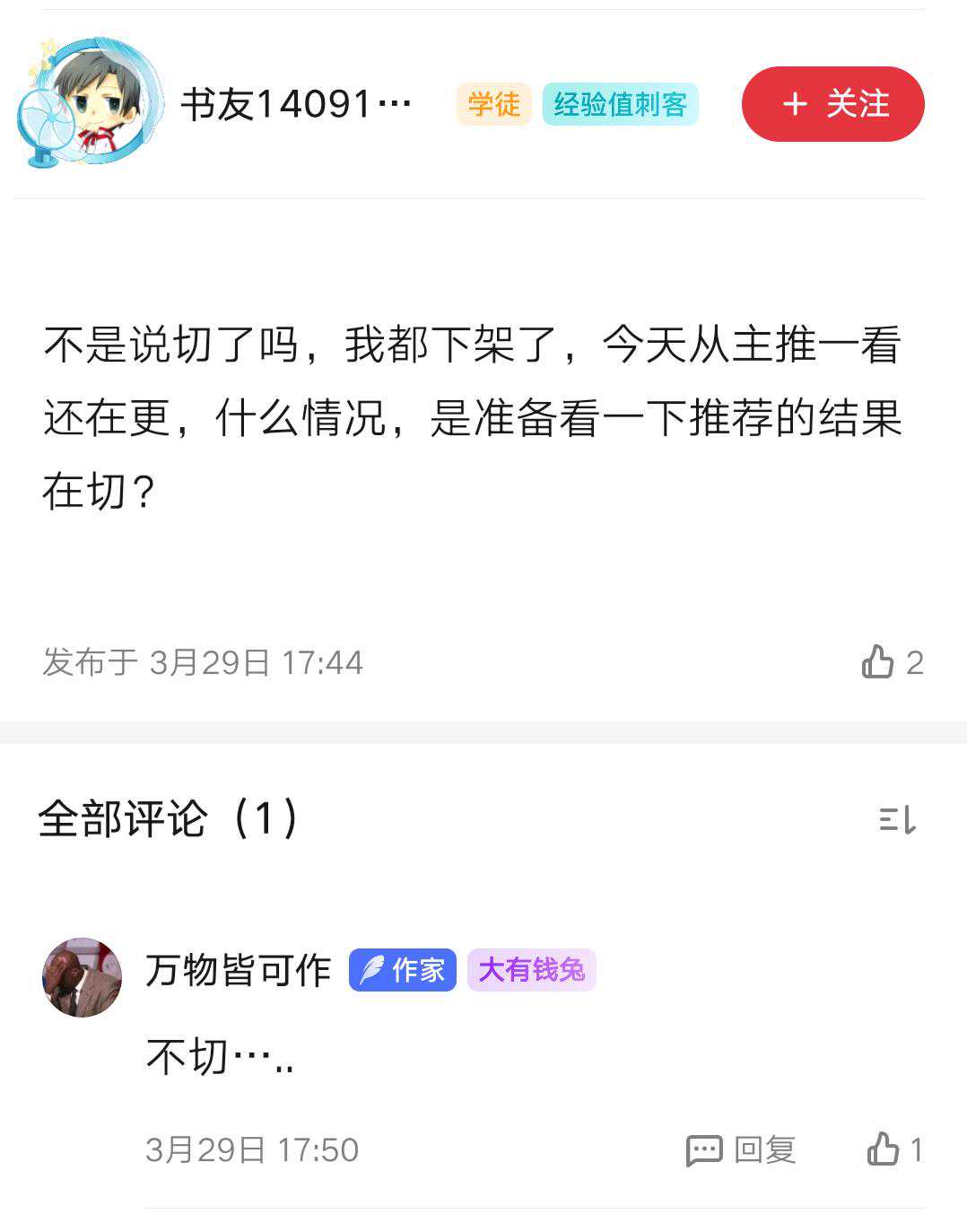 而最近半个月作者也都在稳定更新,看其回复读者又说不切了。