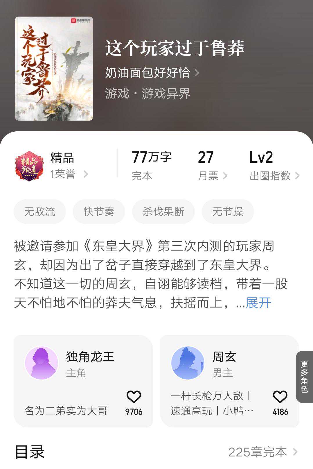 “奶油面包好好恰”的《这个玩家过于鲁莽》在断更三天后直接一章收尾了。