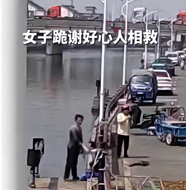 几秒钟的时间,大爷直接冲进了河里,直奔求救女子而来,跳进河里一个使劲直接抱着女孩游到了岸边。