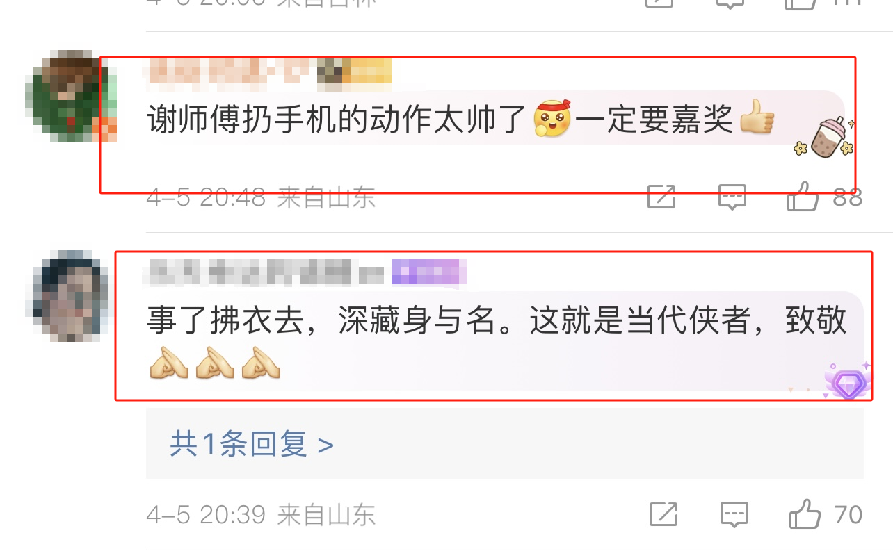 “事了拂衣去,深藏功与名,这才是当代的侠者,向老大爷致敬。”