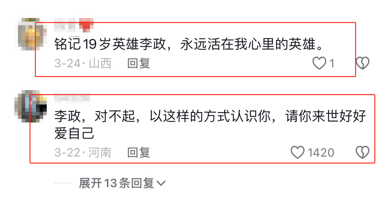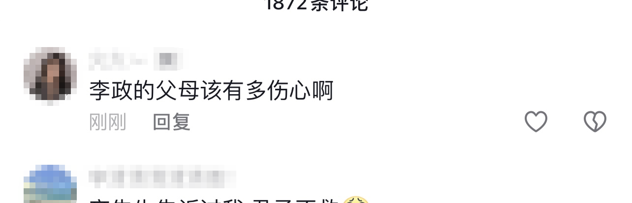 还有网友表示:“李政的父母该有多伤心啊,好不容易养大的儿子就这样没了。”