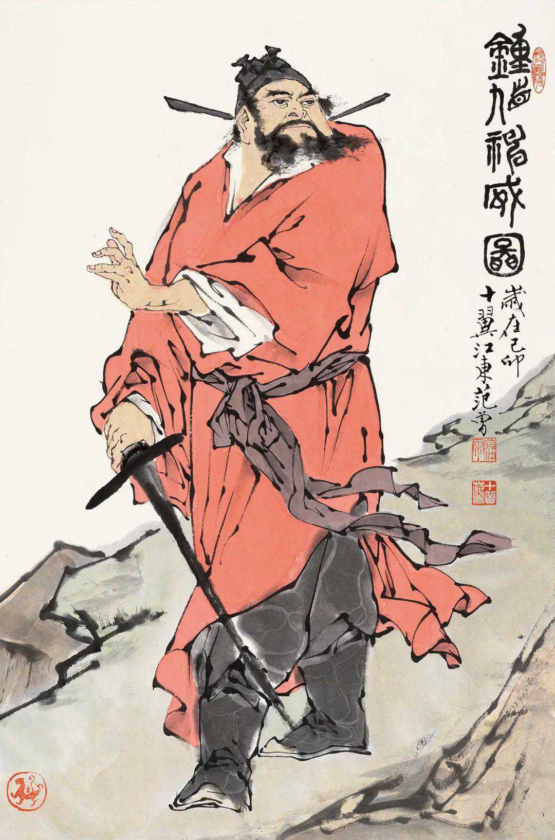 款识:钟馗神威图。岁在己卯,十翼江东范曾。