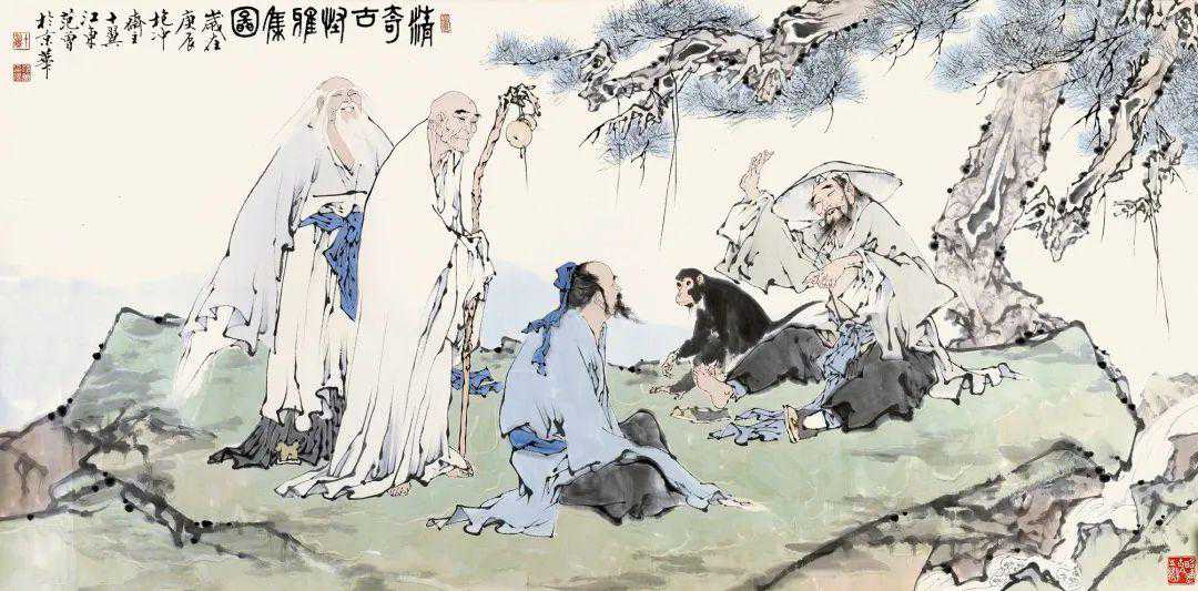款识:精奇古怪雅集图。岁在庚辰,抱冲斋主十翼江东范曾于京华。