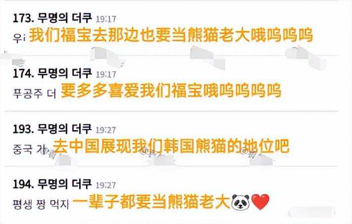 比如有的韩国网友说:“福宝明明是韩国熊猫,为什么要送走?”“简直太坏了,把我们的熊猫抢走。”还有人希望福宝不要忘记“韩国才是你的故国”。