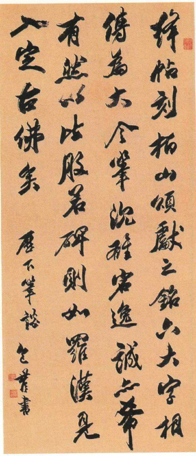 凡作书,无论何体,必须筋骨血肉备具,筋者锋之所为,骨者毫之所为,血者水之所为,肉者墨之所为,锋为笔之情,水为墨之髓。——清.包世臣《安吴论书》