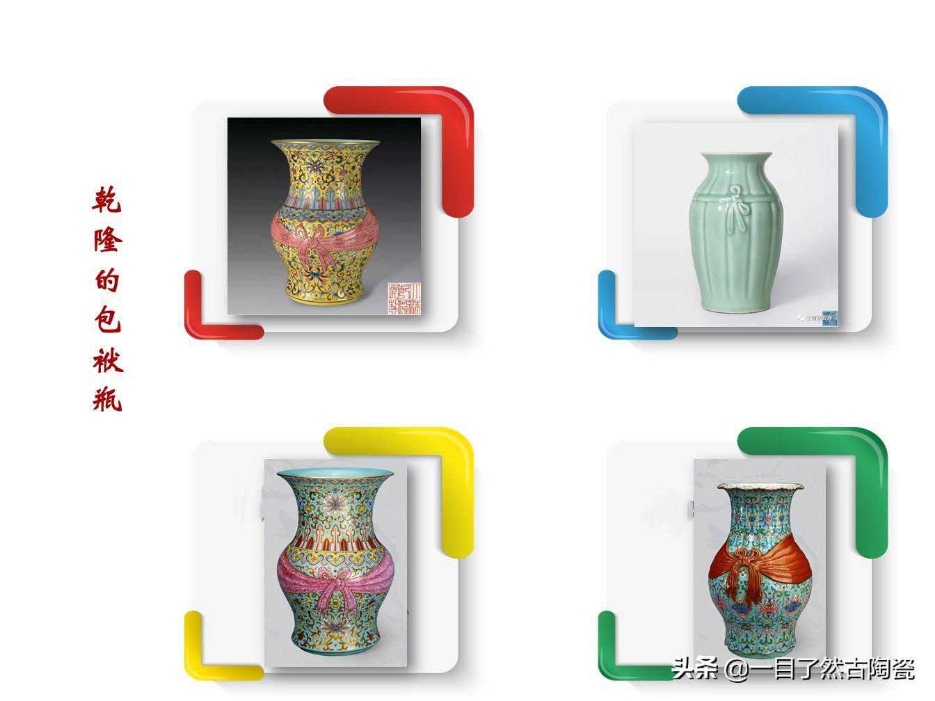 此类瓷器最大特点就是“包袱”部分的纹饰明显有别于器身上的纹饰,而且还有凹凸、皱褶、扣结的设计,使几百年以来的经典器型从雍正时期开始有了突破性的创新尝试,并被宫廷喜爱和认可。