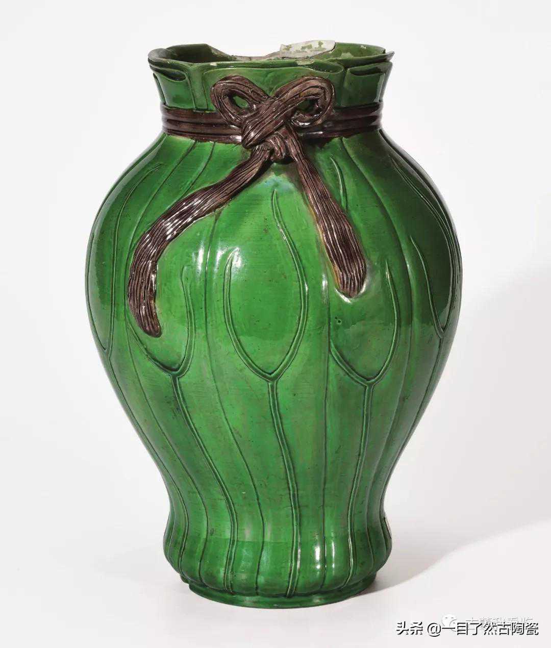 包袱瓶,名字很形象,器身看上去好像披着一个打结的东西,有的比较宽,包裹的比较多,确实像包裹东西的布巾;有的是在器物的肩部披搭,仿佛要滑下来的披肩;有的比较细,纹路像绳子;有的像单色的丝带……。网络百科里可以查到相关解释。核心的意思就是我们传统文化中最擅长借用谐音的吉祥寓意,"包袱"——"包福"。
