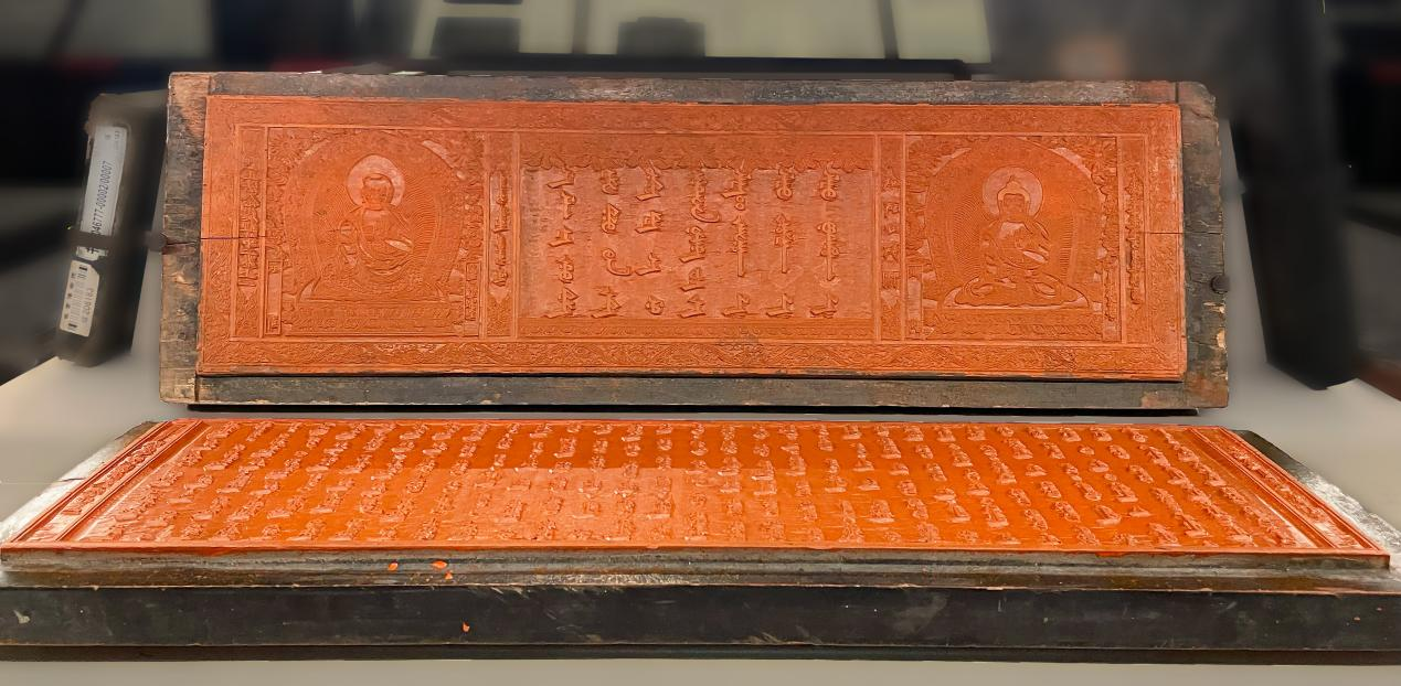 满族人入关一统天下建立清朝,汲取前人经验,非常重视满、蒙、汉三族和谐,在文书方面也多雕刻三语版本,以示重视。清朝崇尚儒家经术,藏经雕版多是贵重梨木,并且上下护经板多使用上等木材雕漆,华贵中带着大气。雕刻更是细致,繁琐的线条勾勒出传神的佛像,精雕细琢中传递着虔诚。