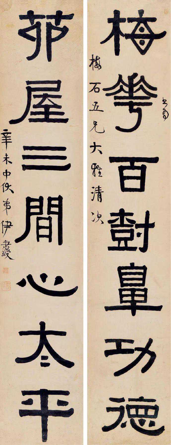 伊秉绶(1754-1815),号墨卿、默庵。福建汀洲人,故人又称“伊汀洲”。其父伊朝栋,乾隆三十四年(1769)进士,历官刑部主事、御史、光禄寺卿。史称伊秉绶“通程朱理学,幼秉庭训,从师阴承方,讲求立心行己之学。”后受大学士朱珪的赏识与纪晓岚的器重,拜纪为师,又拜当时最负盛名的书法家刘墉为师学书法。