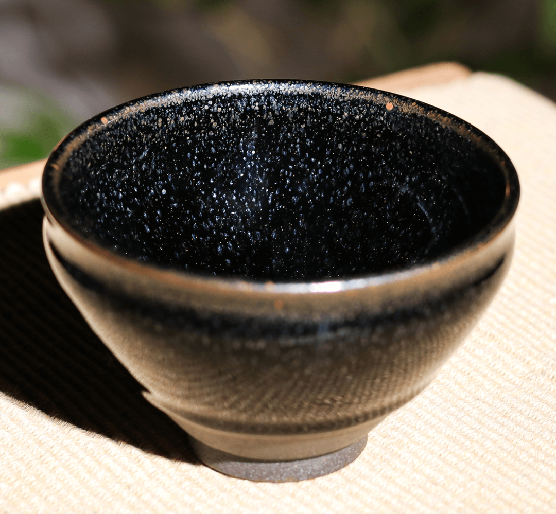 手指轻轻抚触盏身顿感温润如玉,质地细腻,绀黑中带着深邃的蓝显得沉静似水,凝重华贵,更具气势,更显名贵。