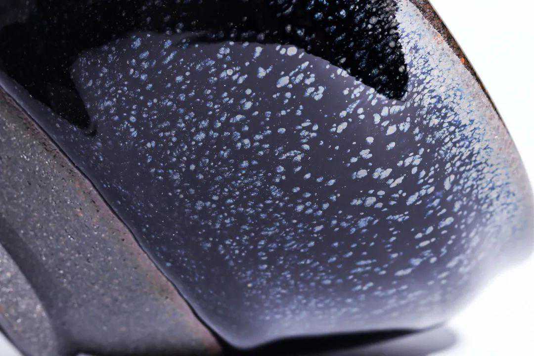 令人啧啧称奇的是,张木芳老师这只芳叔乌金蓝油滴除了拥有绀黑如镜的外表,内里还隐藏着似广阔无垠宇宙般神秘深邃的蓝油滴,十分难得。