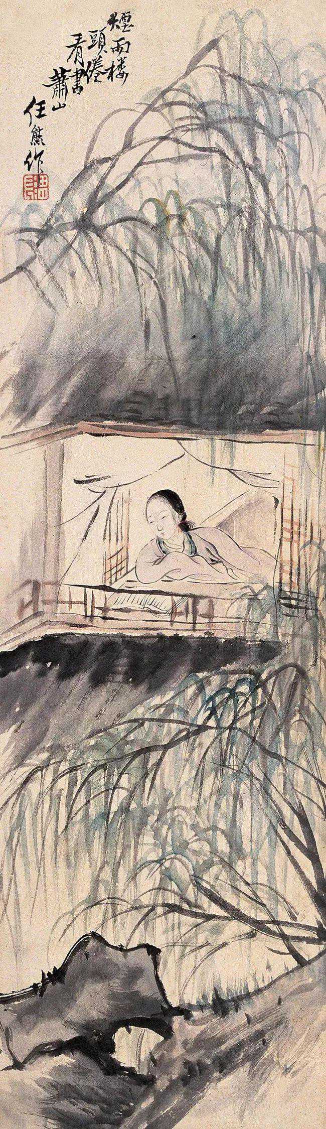 他是绘画全才,人物、花卉、山水、翎毛、虫鱼、走兽,无一不精。画法宗陈洪绶,与弟任薰,儿子任预、侄任颐合称“海上四任”,又与朱熊、张熊合称“沪上三熊”。