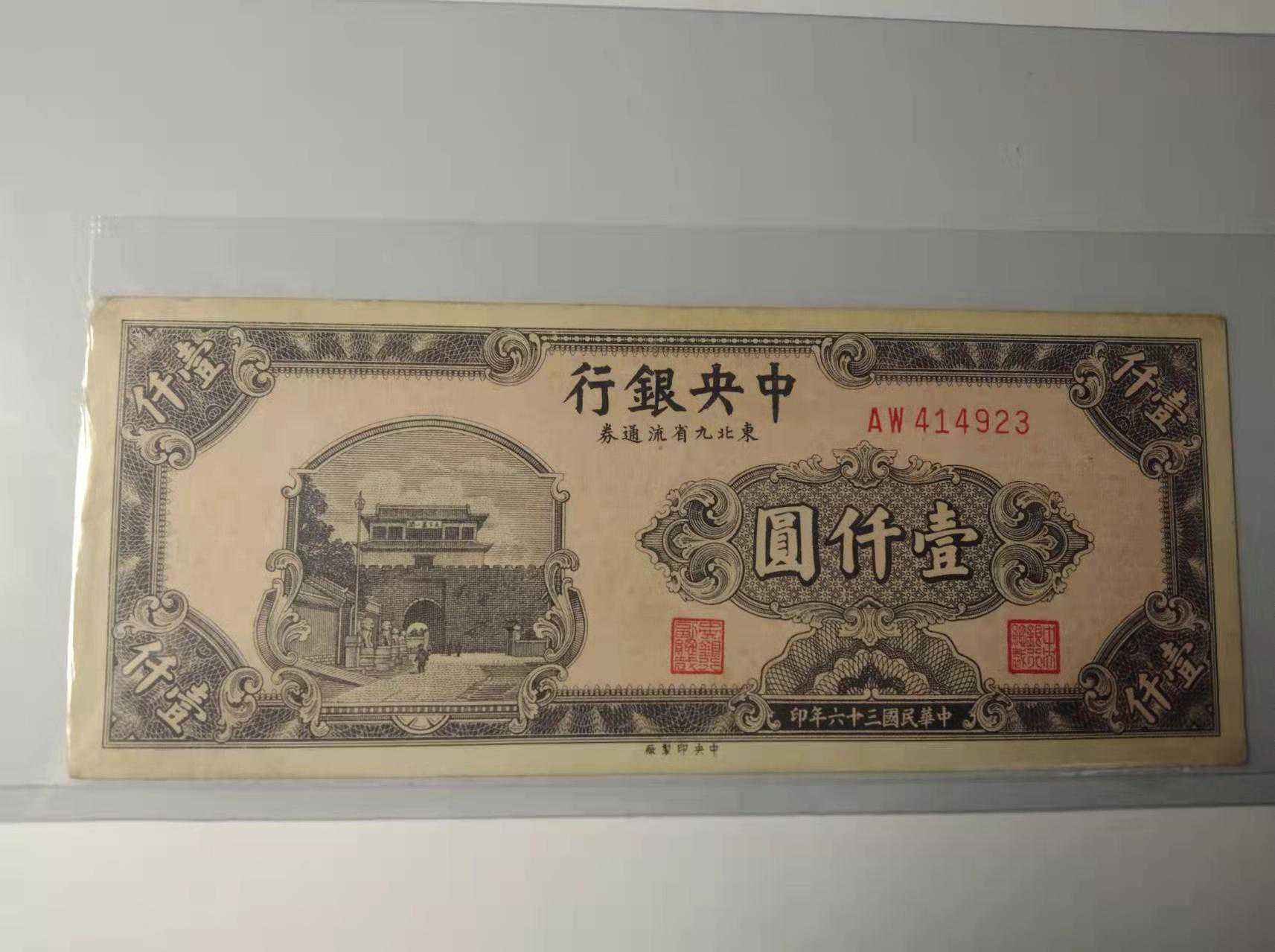 这其中的二家印制厂,也就是中央印制厂北平厂、中华书局,它们各自仅仅印制了一种版别的纸币,中华书局印制了1000元面值的纸币,这枚纸币比较常见,属于普币。