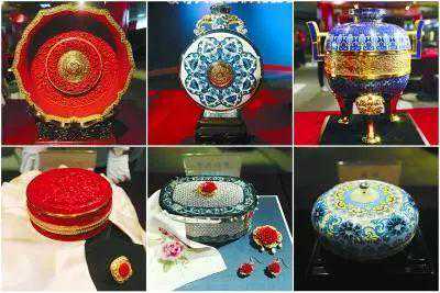 从上到下从左至右:《丝路绽放》雕漆赏盘、《共襄盛事》景泰蓝赏瓶、《和合宝鼎》珐琅器、《和合之美》捧盒套装、《梦和天下》首饰盒套装、《和韵》捧盒。
