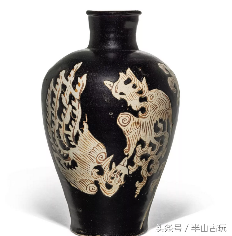 北宋磁州窑黑剔花牡丹纹梅瓶成交价:396,500美元纽约佳士得