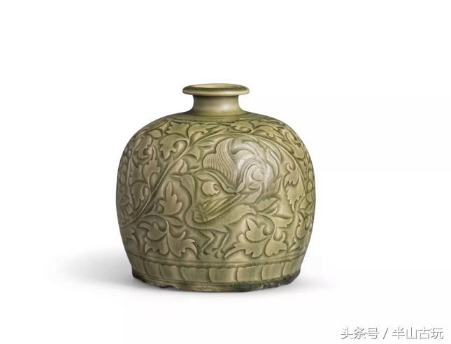 五代/北宋耀州窑青釉刻花罐成交价:187,500英镑伦敦苏富比