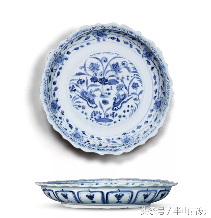 元青花莲塘菱口折沿大盘成交价:4,920,000港元香港苏富比