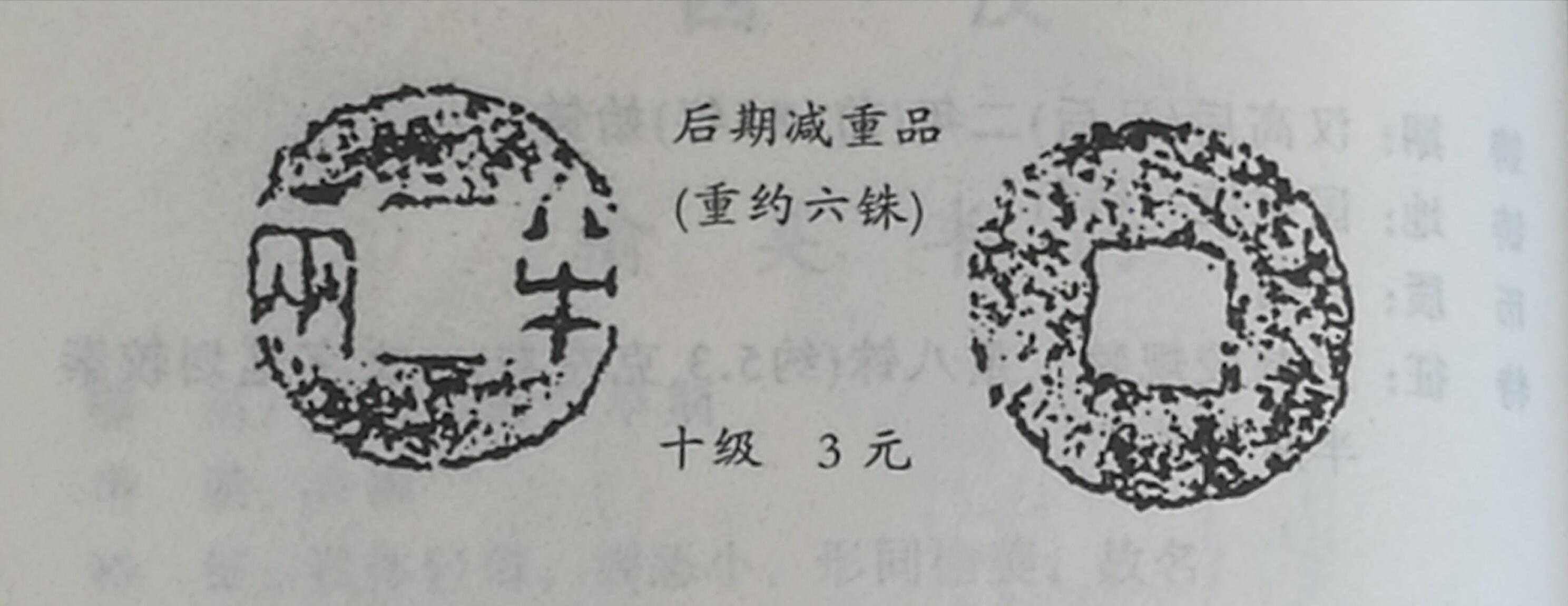 西汉汉文帝铸(前175前--前119年)有郭四铢半两铁钱,较少品种,七级币,市场参考价300元。