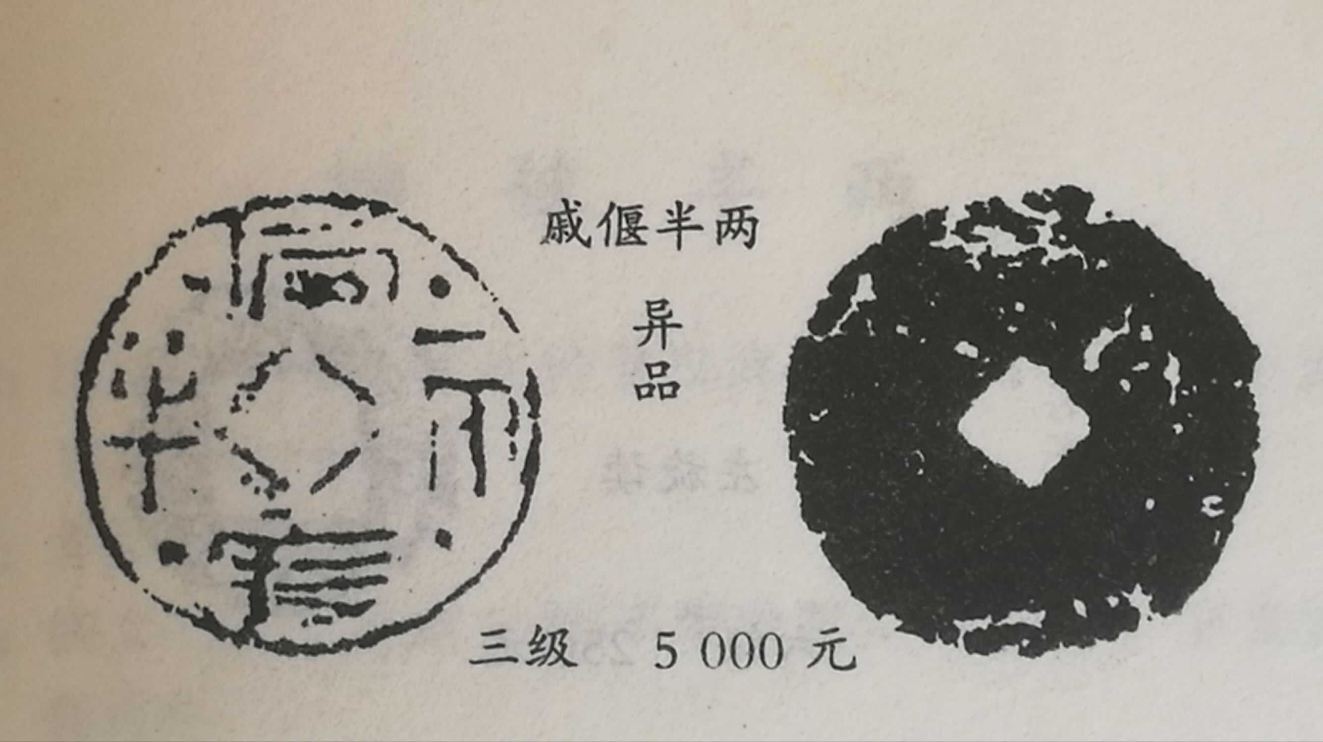 西汉汉高后(吕后)铸复式五分钱半两,稀少品种,五级币,市场参考价6000元。