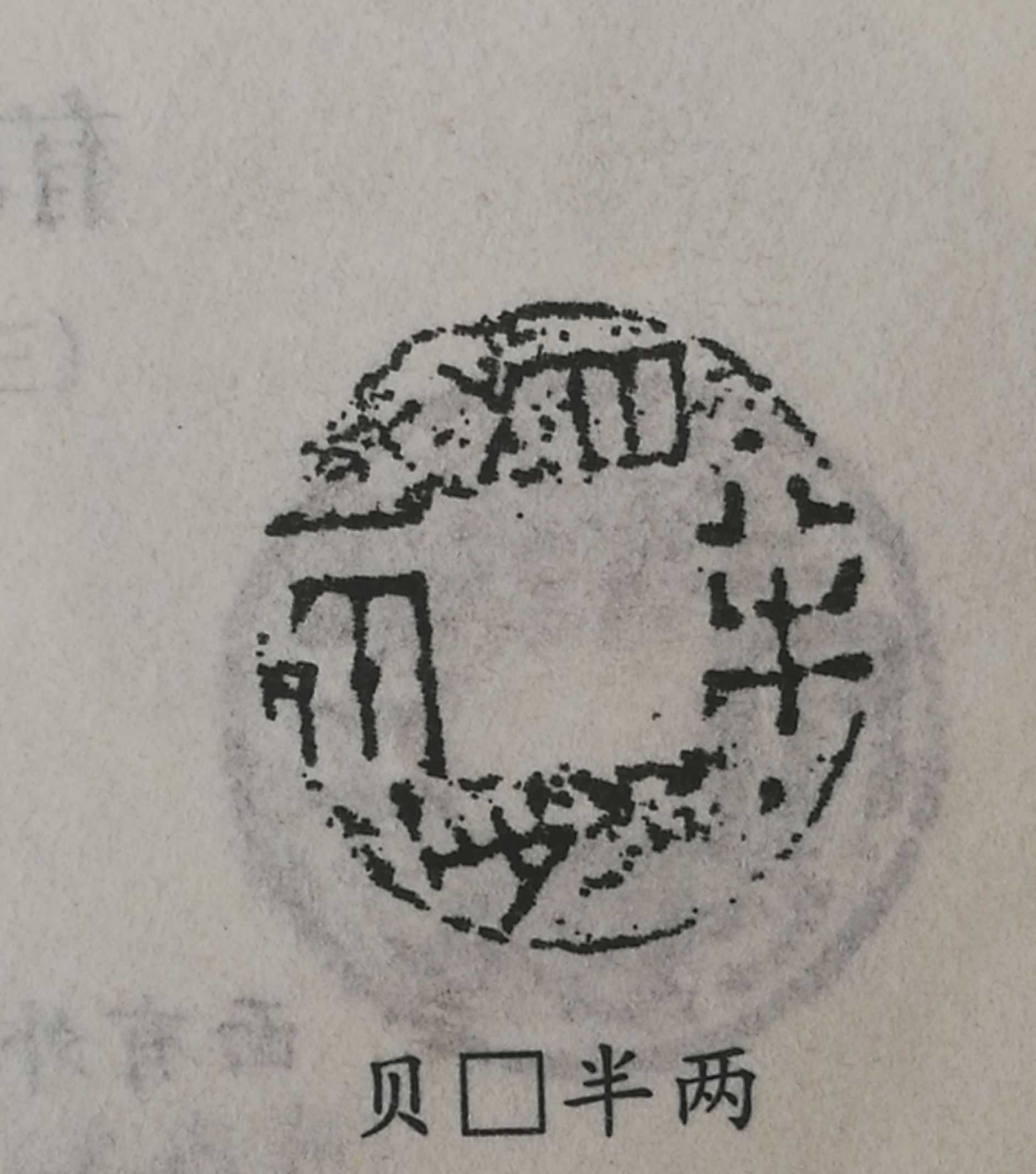 西汉汉文帝铸(前175前--前119年)贝□四铢半两,稀有品种,四级币,市场参考价10000元。