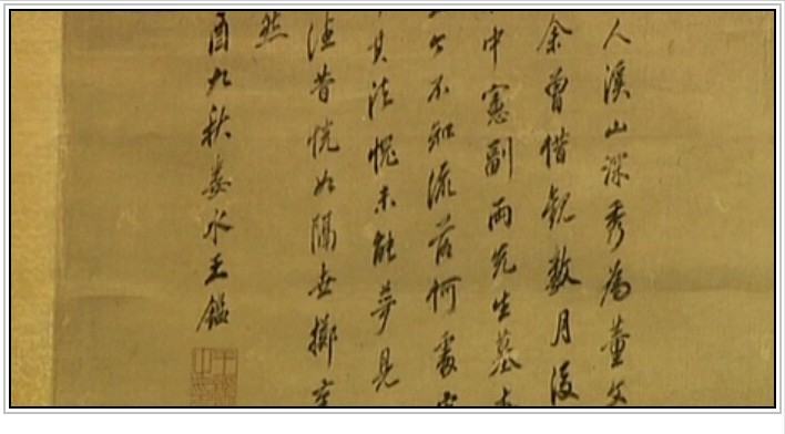 北宋山水画追求的是一种可游可居的景致,用笔用墨都在点滴之间,体现山水为媒的感觉,王鉴模仿元代画家吴镇的这幅《溪山深秀图》也恰到好处地将古人的意境体现得淋漓尽致。在书画收藏大家董其昌收藏吴镇的《溪山深秀图》时,王鉴借来观看了几个月的时间,仿画出了《溪山深秀图》。原来的吴镇的那副《溪山深秀图》就不知下落了。