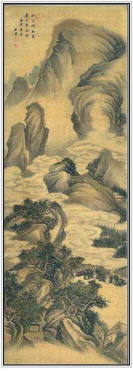 清朝早期王鉴《岭上白云图》绢本设色143.7现藏于北京故宫博物院。