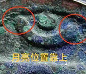 3、月亮位置不同,这也是最关键的区别点!正月版月亮离上边缘远,且星星为小星,而普通版月亮几乎挨住了上边缘,星星为大星,大家看了对比图就懂了!