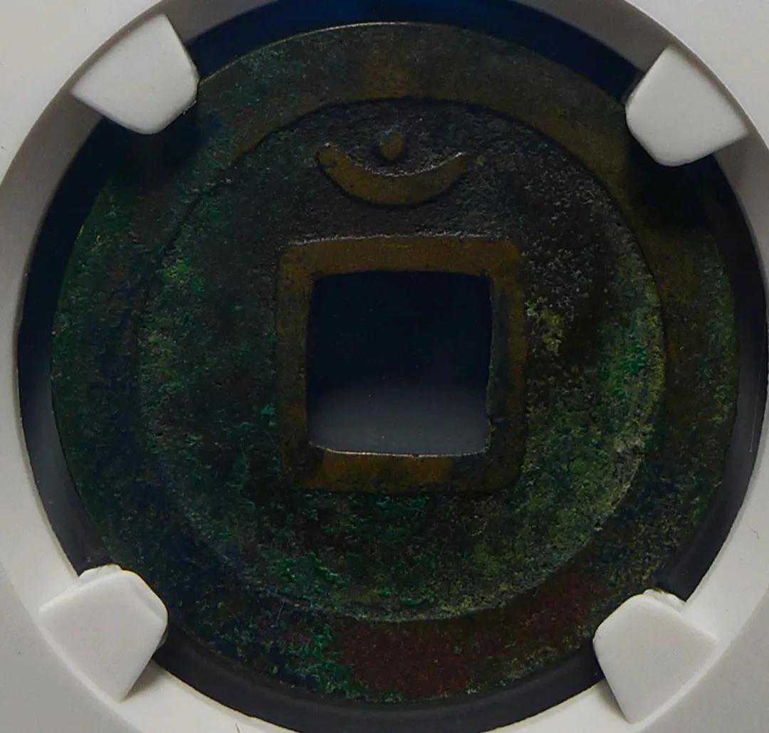 再给大家看一个今天要介绍的版别,开元通宝平头通阔缘月孕星正月版是什么样子的。
