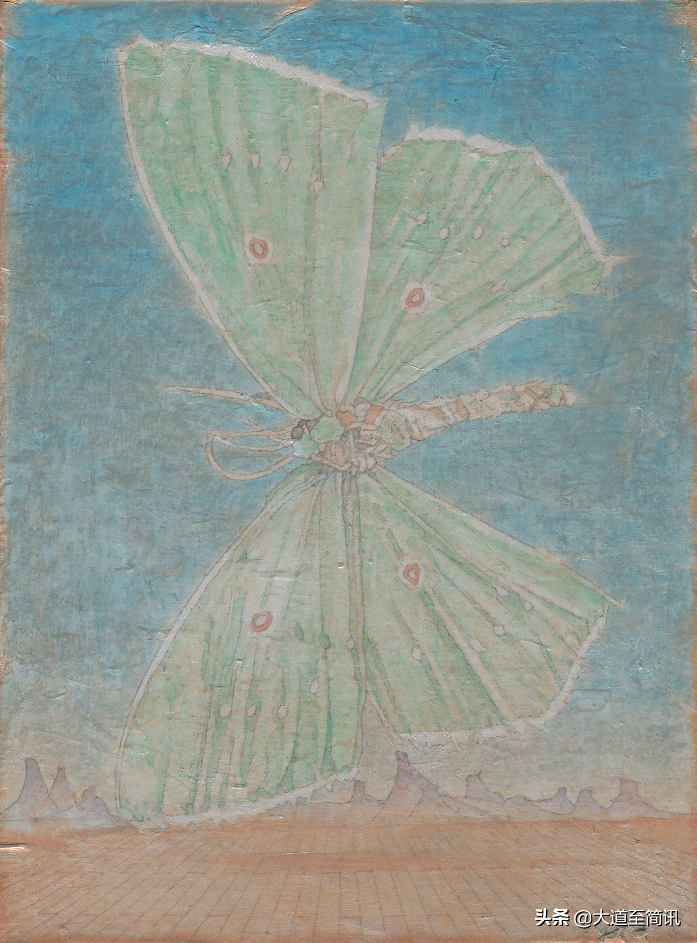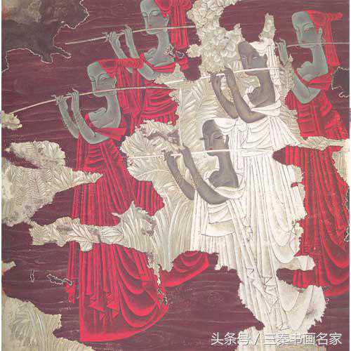 整件作品散发着恬静、柔和而又神秘的气息,仿佛敦煌莫高窟壁画中的经变图,历经千年光阴的照射、消磨与侵蚀,虽然渐渐褪去昔日的光彩,却依然神采飞扬。