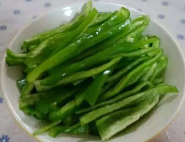 准备一个圆椒切细丝,