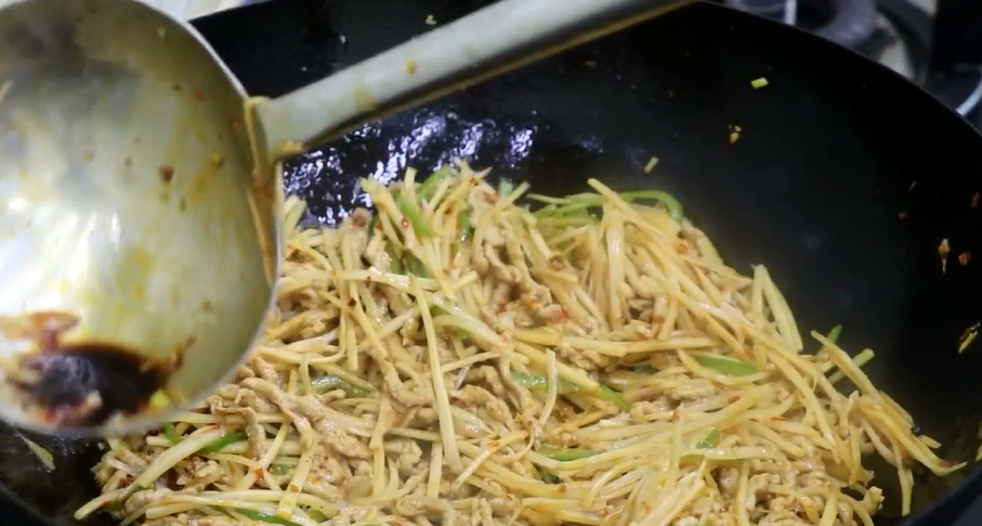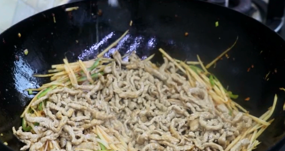 2.肉丝不粘锅必须要滑一下锅,仔姜容易熟,所以一定要快速翻炒。