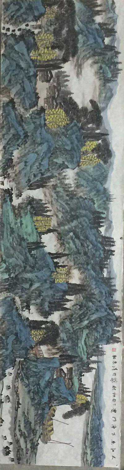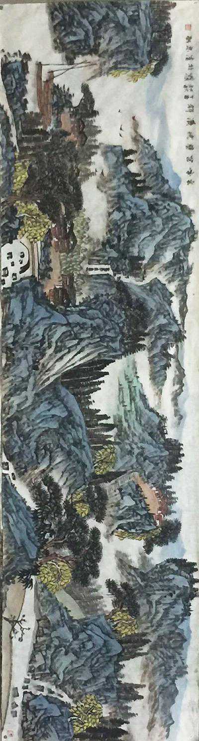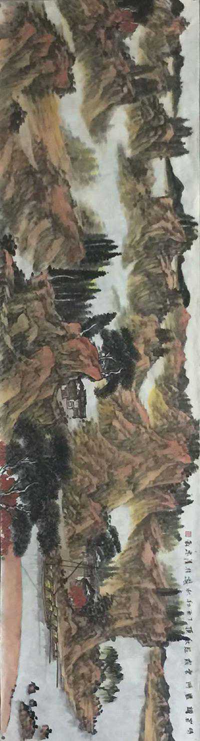 《时菊耀岩阿、云霞冠秋顶》48X180cm