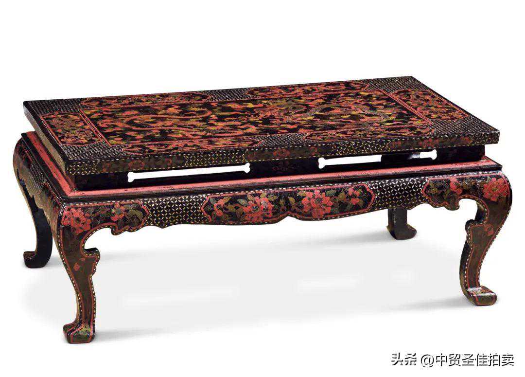 明晚期黑漆嵌螺钿五彩戗金炕桌