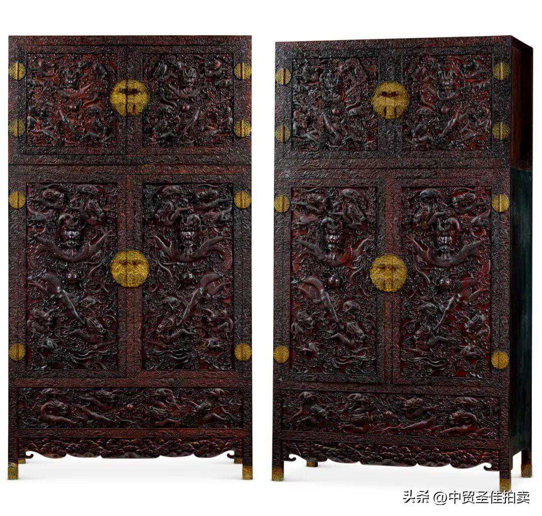 现代紫檀高浮雕龙纹大柜一对