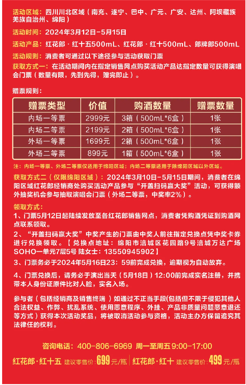 重磅来袭!实力天后张靓颖、华语金曲唱将温岚、姜育恒、水木年华5月18日,2024红花郎之夜群星演唱会(绵阳站)即将开启,一众巨星再聚首,唱响经典,与郎酒FANS一起享受最红火的盛典~